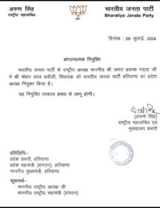 नायब सैनी ने सोमवार (8 जुलाई) को दिल्ली में केंद्रीय मंत्री और BJPअध्यक्ष जेपी नड्डा से मुलाकात की थी। माना जा रहा है कि इसी बैठक में बडौली का नाम फाइनल हो गया। बडौली की नियुक्ति के बाद सैनी ने कहा, ‘राई विधायक मोहन लाल बडौली को भारतीय जनता पार्टी हरियाणा का प्रदेश अध्यक्ष नियुक्त होने पर बहुत-बहुत बधाई और शुभकामनाएं।’ मुझे पूर्ण विश्वास है कि आपके नेतृत्व में हरियाणा में संगठनात्मक कार्य को नई दिशा मिलेगी और तीसरी बार फिर भाजपा की सरकार बनेगी।
